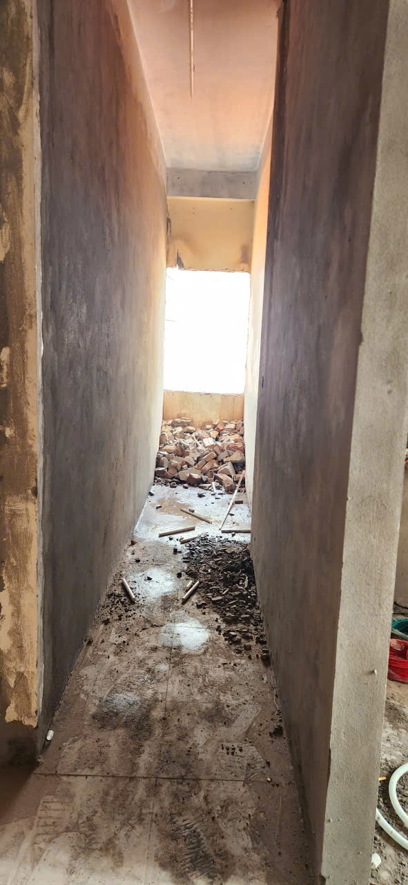 Thi công hệ thống tường ngăn và hoàn thiện kết cấu gạch. Các mảng tường thô được xử lý chắc chắn, chuẩn bị cho các công đoạn ốp lát và hoàn thiện nội thất