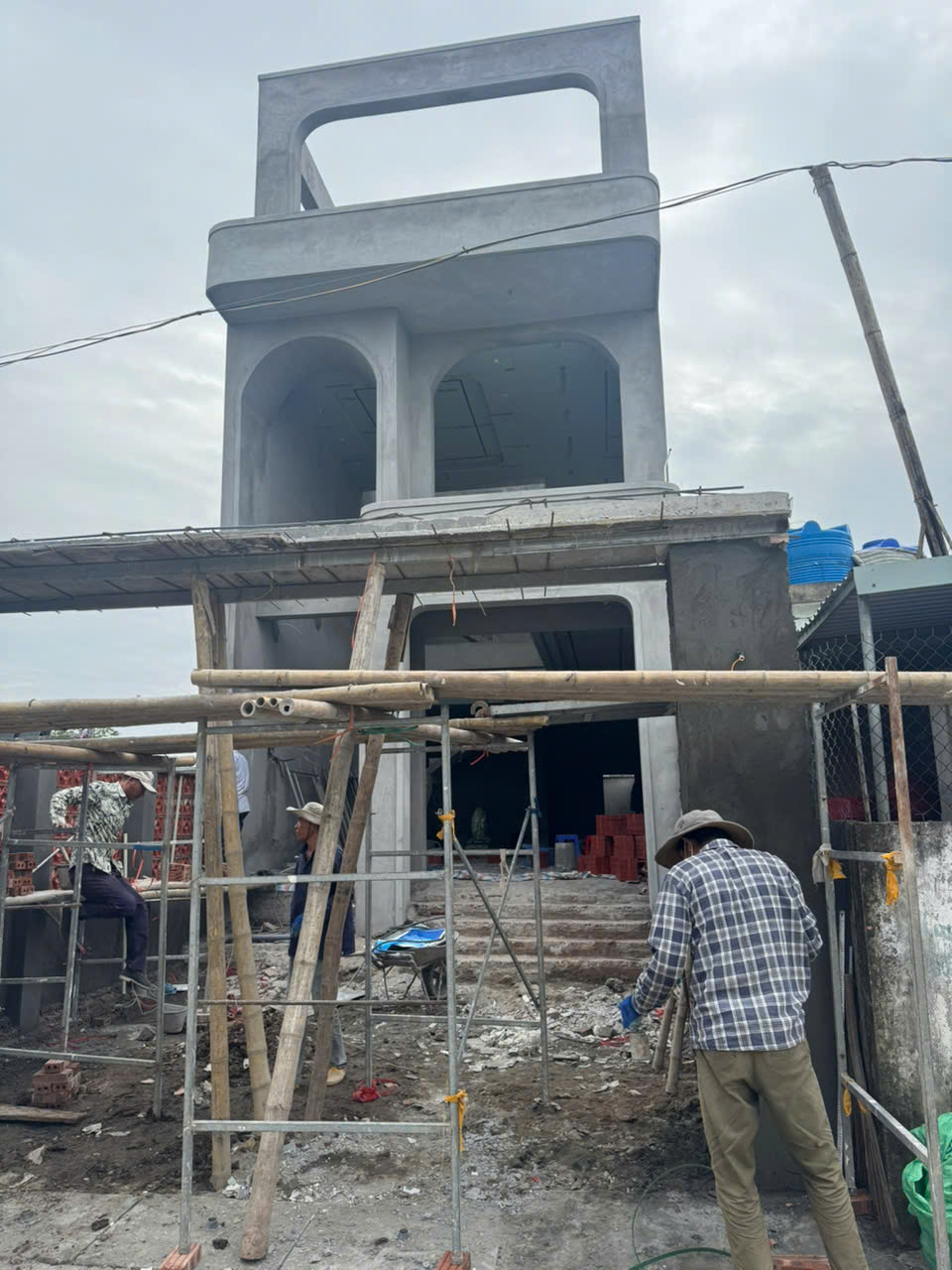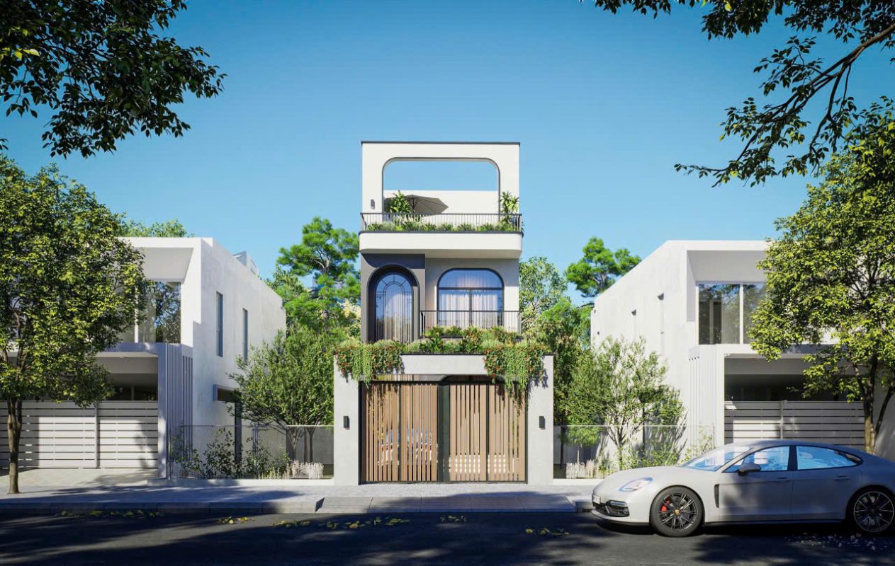 Công trình nhà phố hiện đại 3 tầng với thiết kế tối giản, tinh tế. Mặt tiền nổi bật nhờ đường nét vuông vức kết hợp các chi tiết vòm mềm mại, tạo cảm giác vừa sang trọng vừa gần gũi. Không gian xanh được lồng ghép khéo léo trên ban công và sân thượng, mang lại sự thoáng mát và hài hòa với thiên nhiên.